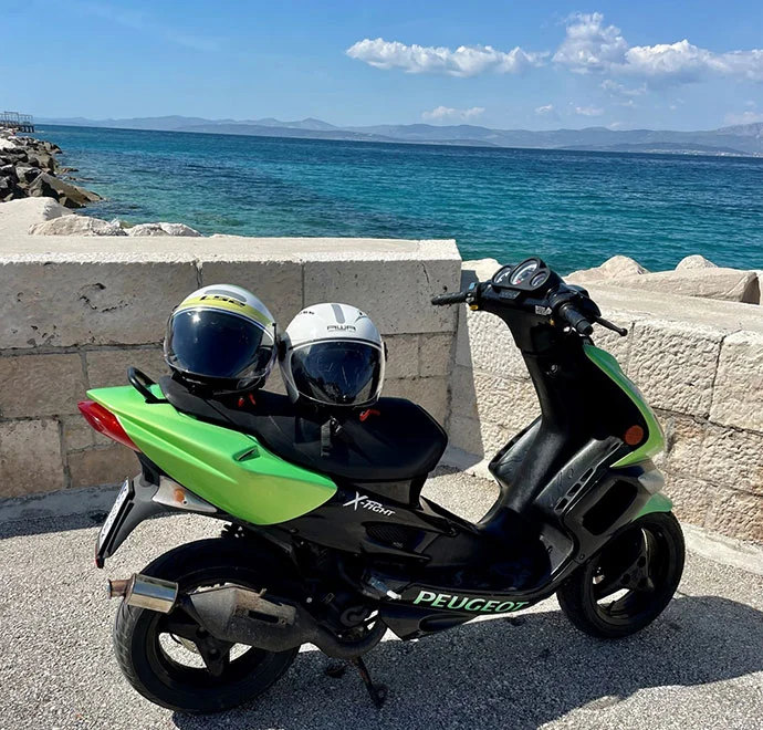 As is the case when looking for any used vehicle, it was a time-consuming process. (Check out our guide to buying & selling a used vehicle in Croatia as a foreigner to save yourself some time and a few headaches.) Add in the extra difficulty of not speaking Croatian and, long story short, it took us a little longer than we expected. But alas, one sunny spring day a photo of a bright green Peugeot X-Fight appeared on my Facebook Marketplace newsfeed. We instantly knew it was the one. A message was sent to the seller and a date was set for us to test drive our dream scooter.