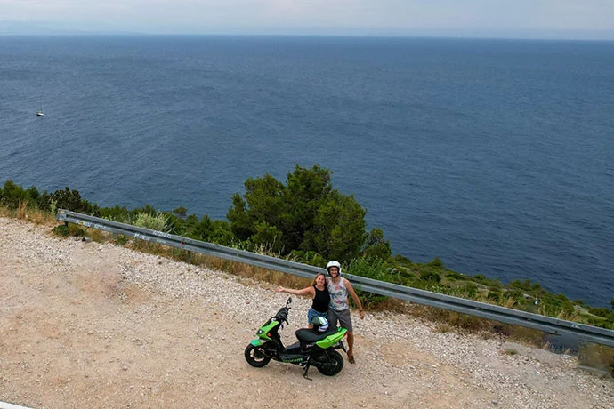 Our scooter, which we named Jerry, went on many adventures with us. We took him to more islands (check out some of our adventures with our scooter here!), the Makarska Riviera, Trogir, and on beautiful Croatian mountain roads. We looked forward to taking Jerry out on the weekends and during the weeks he would take us to the beach for morning swims, on quick trips to the grocery store, or just on a cruise through town. We made the difficult decision to sell Jerry when we thought we were moving away from Croatia. The buyer was a teenager purchasing his first scooter and he has continued to text us to let us know how much he enjoys it.